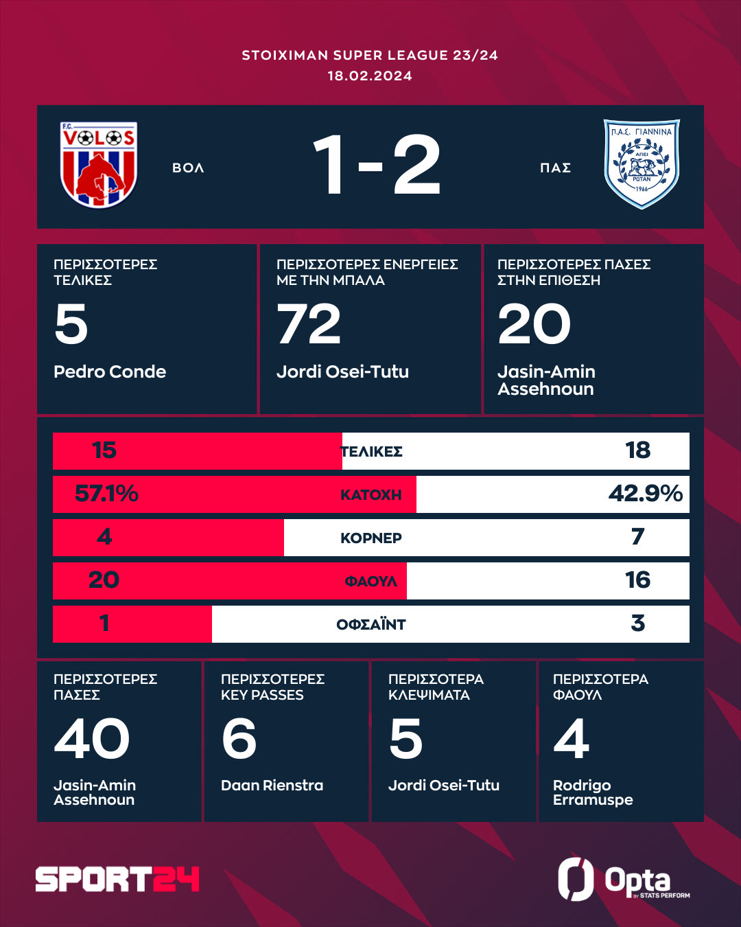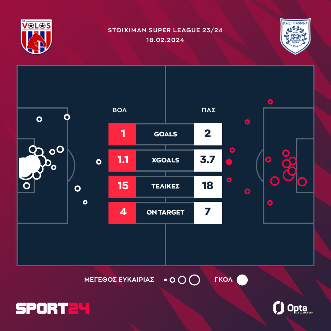 Οι τελικές και τα Expected Goals στο Βόλος - ΠΑΣ Γιάννινα