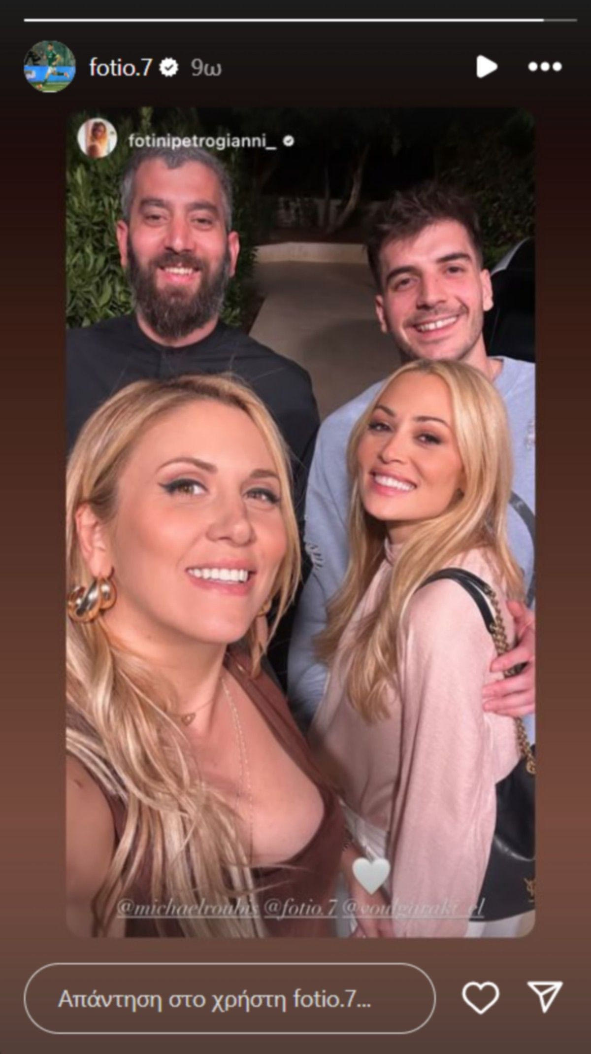 Η Φωτεινή Πετρογιάννη μάλιστα ανήρτησε στο Instagram μια φωτογραφία στην οποία ποζάρει μαζί με τον αγαπημένο της Μιχάλη Ρουμπή, την συνεργάτιδά της και τον Φώτη Ιωαννίδη στην κοινή τους έξοδο.