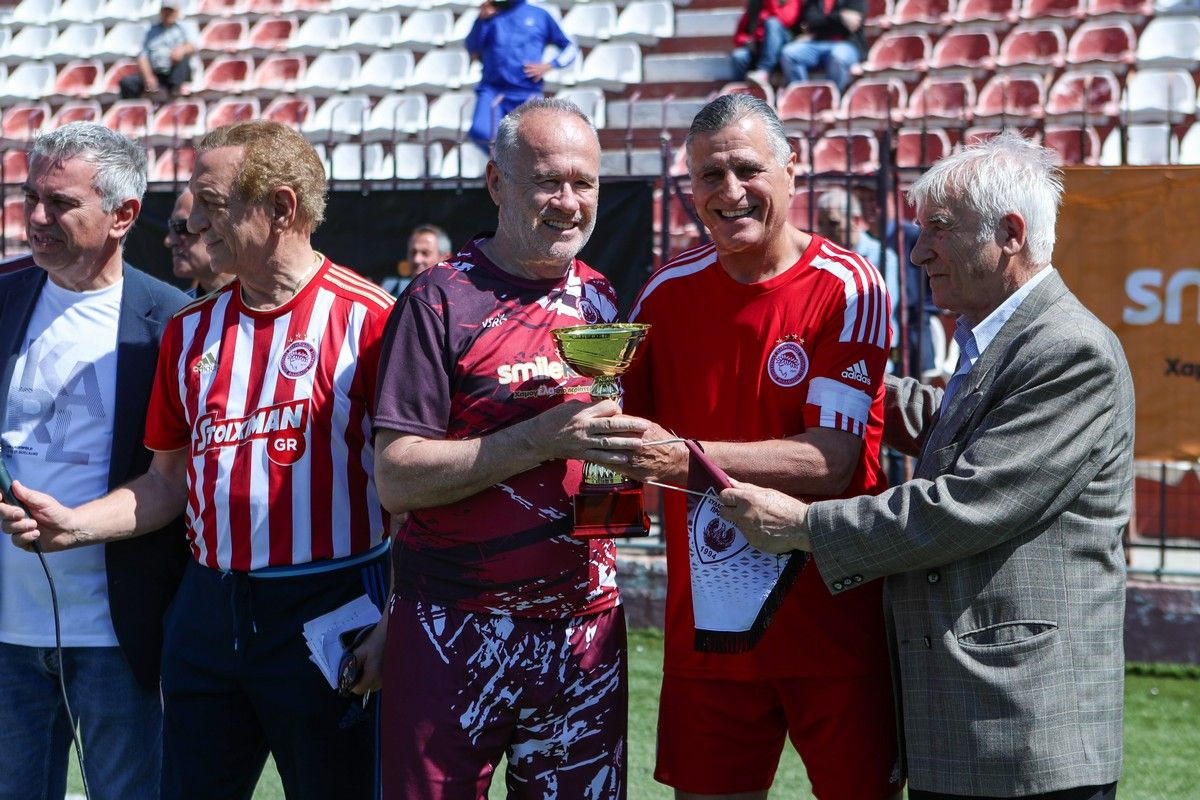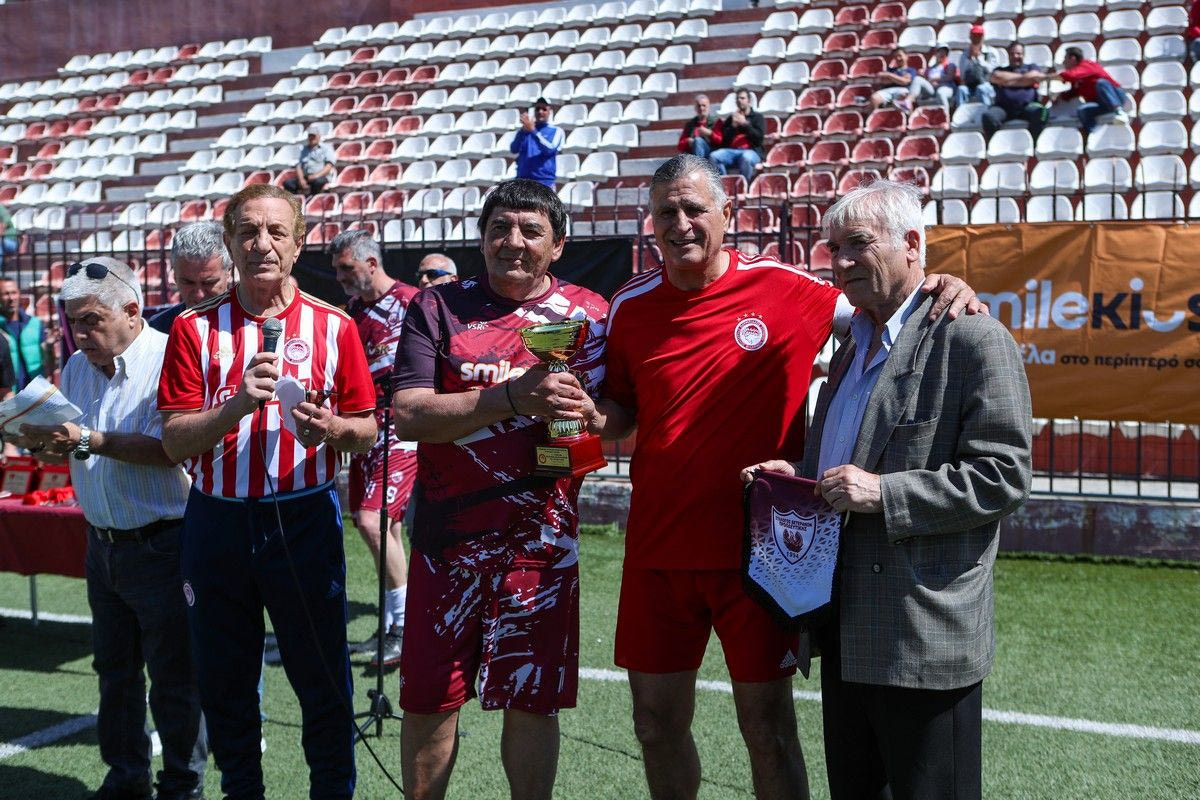 Παράλληλα, βραβεύθηκαν οι βετεράνοι ποδοσφαιριστές που αγωνίστηκαν και στις δύο ομάδες Κελεσίδης, Καραβίτης, Ξανθόπουλος, Πάντος, Γκαϊτατζής, Αγγελής, ο δήμαρχος Νίκαιας Κωνσταντίνος Μαραγκάκης, ο Νίκος Γιδάκος και άλλοι βετεράνοι ποδοσφαιριστές της Προοδευτικής.