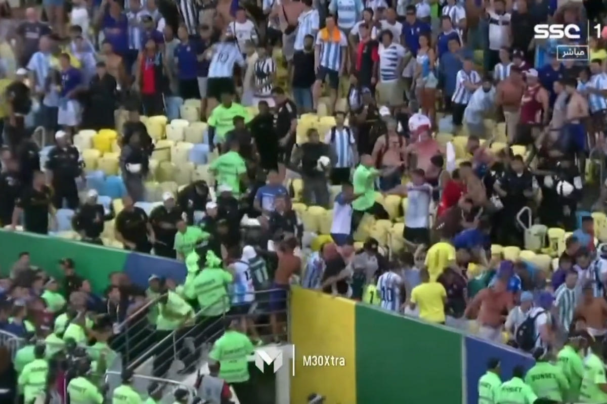 Το σπουδαίο ντέρμπι μεταξύ της Βραζιλίας και της Αργεντινής στο Μαρακανά στιγματίστηκε από σοβαρά επεισόδια στις εξέδρες που είχαν ως αποτέλεσμα η έναρξη του αγώνα να καθυστερήσει για 28 λεπτά.