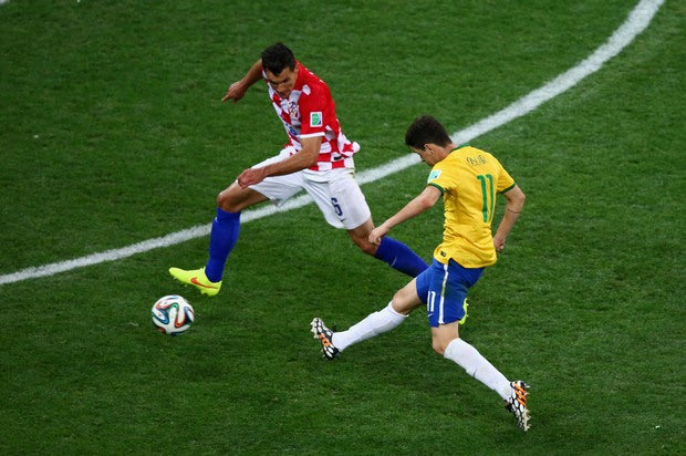Η Βραζιλία απείλησε ουσιαστικά για πρώτη φορά στο 22′ με το αριστερό σουτ του Οσκάρ, το οποίο απέκρουσε εντυπωσιακά ο Στίπε Πλετίκοσα σε κόρνερ.