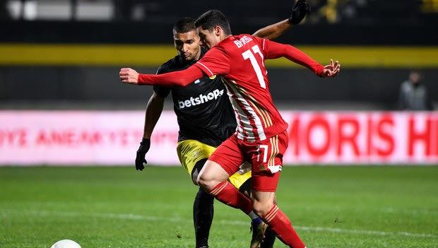 Ο Μάριος Βρουσάι σε προσπάθειά του στο Άρης - Ολυμπιακός