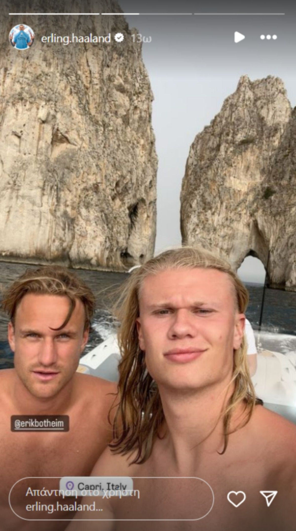 Ο Έρλινγκ Χάλαντ απολαμβάνει τις καλοκαιρινές του διακοπές. Στο Κάπρι ο Νορβηγός επιθετικός μαζί με τον Έρικ Μποτέιμ.