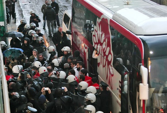 Η παρουσία της Αστυνομίας στο γήπεδο έγινε πλέον εντονότατη. Άλλες δυο διμοιρίες προκειμένου να ελέγξουν την κατάσταση.