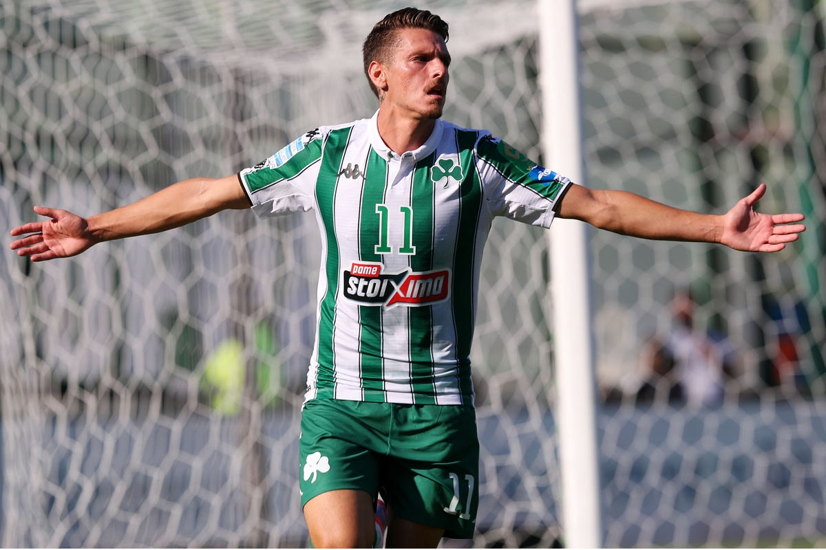 Ο Τάσος Χατζηγιοβάνης πανηγυρίζει γκολ που σημείωσε με τη φανέλα του Παναθηναϊκού INTIME