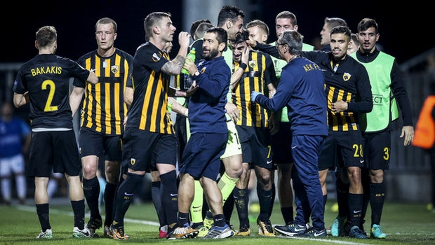 Η αντίδραση που είχε πάλι η ΑΕΚ σε στημένη φάση. Πάλι δέχθηκε γκολ από κόρνερ. Όπως και στα δυο ματς με την ΤΣΣΚΑ Μόσχας. Είναι τρομερό το γεγονός πως η ΑΕΚ σε επίσημο παιχνίδι φέτος, δεν έχει δεχθεί γκολ με άλλον τρόπο, πλην των… κόρνερ.