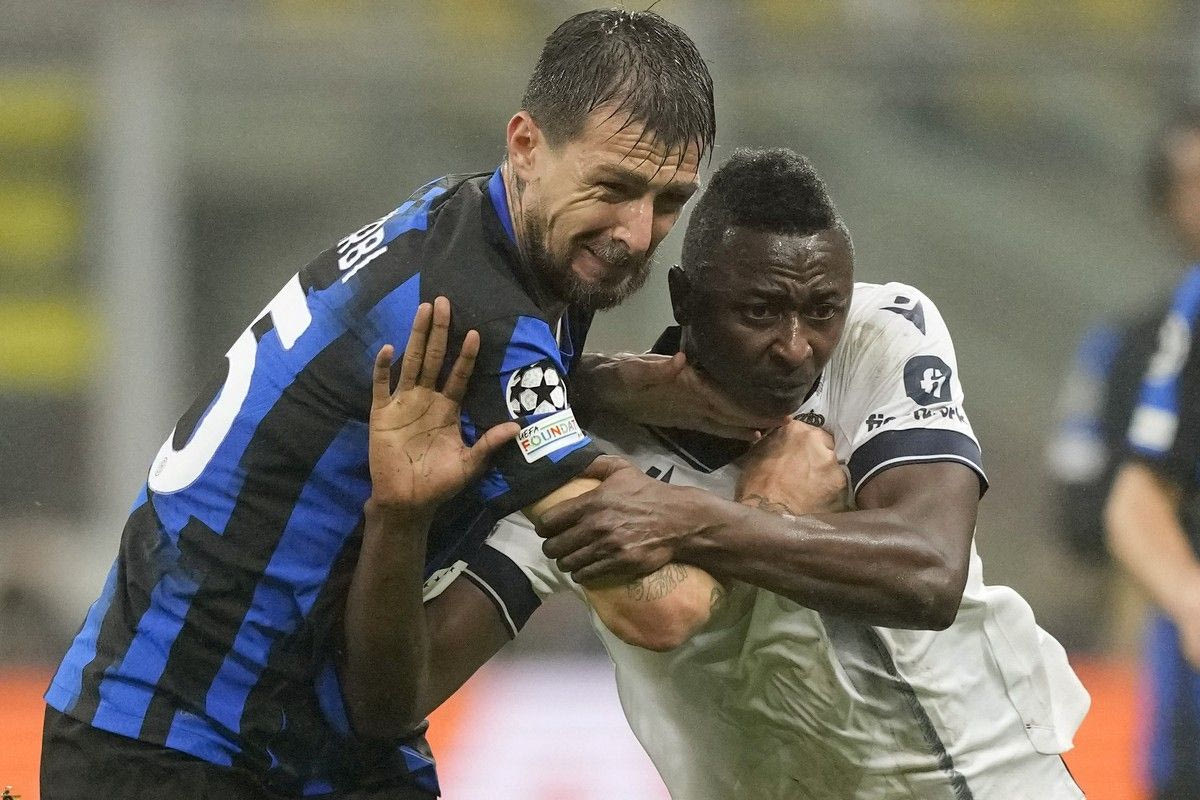 Ο Φραντσέσκο Ατσέρμπι σε μονομαχία του με τον Ουμάρ Σαντίκ σε αγώνα της Ίντερ με την Σοσιεδάδ στο Champions League | 12 Δεκεμβρίου 2023
