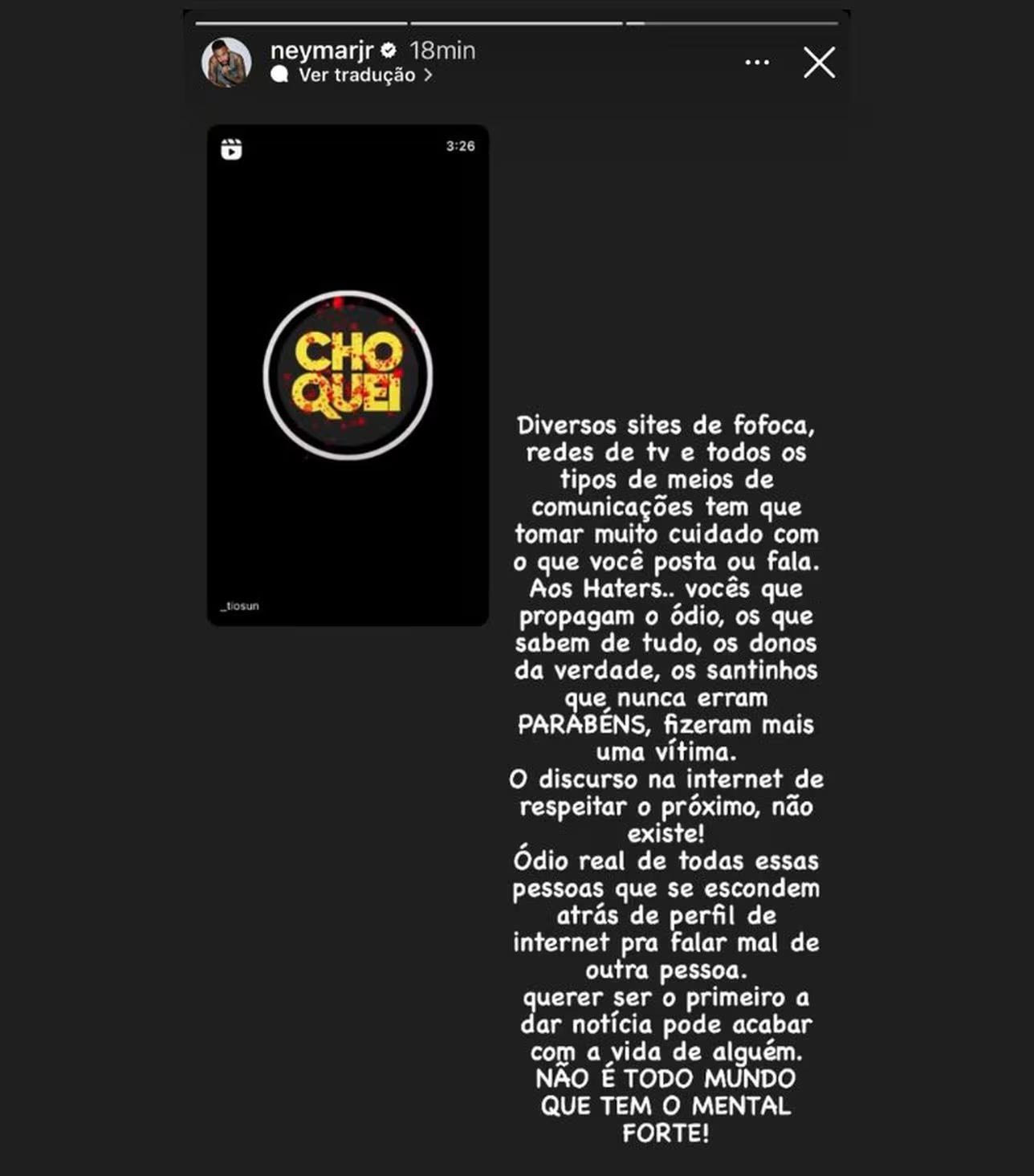 Το να θέλεις να είσαι ο πρώτος που θα μεταφέρει τα νέα μπορεί να δώσει τέλος στη ζωή κάποιου ανθρώπου. Δεν είναι όλοι ψυχικά δυνατοί”, έγραψε στο Instagram ο Βραζιλιάνος.
