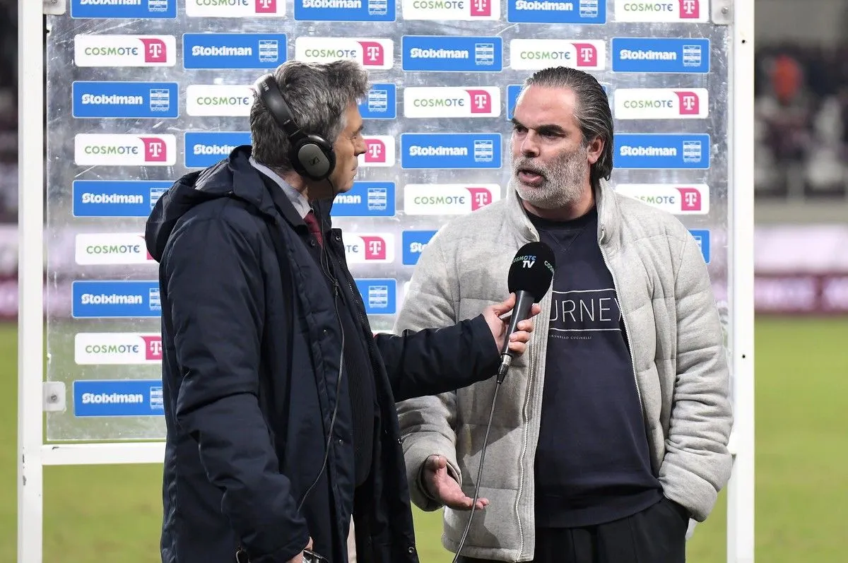 Μετά το τέλος της αναμέτρησης, αντί του προπονητή της ομάδας, Ζεράρ Σαραγόσα, μίλησε στην κάμερα της COSMOTE TV ο πρόεδρος του συλλόγου των Σερρών, Τάσος Καζίας.