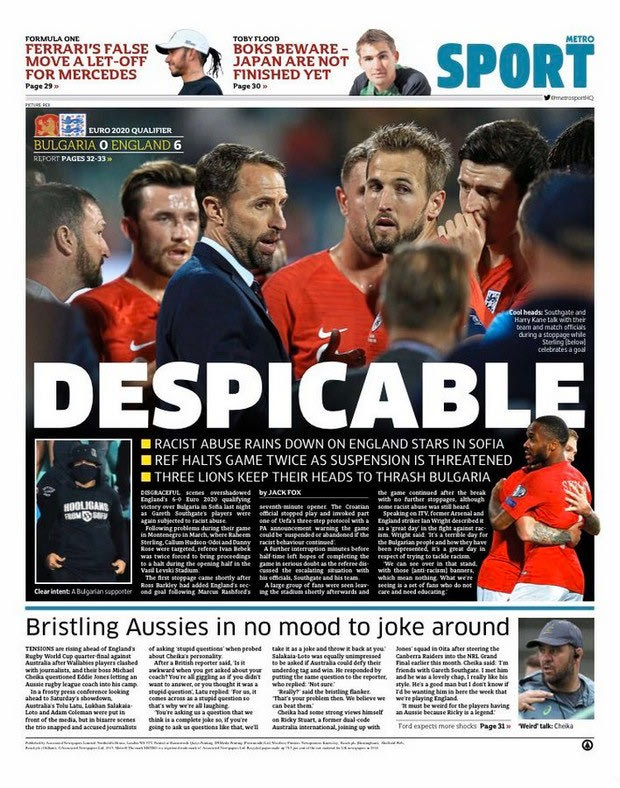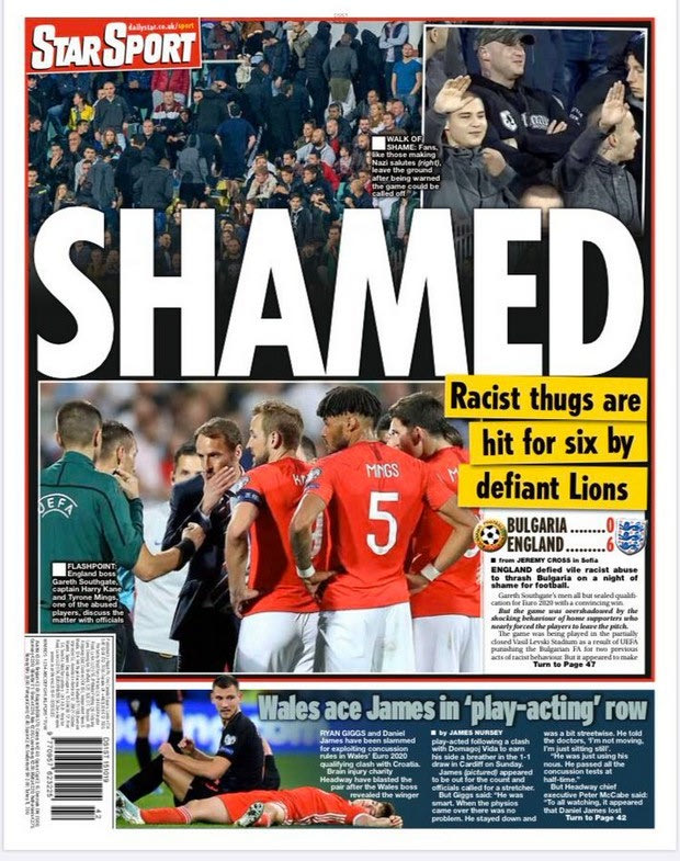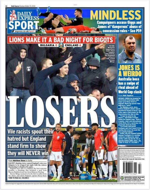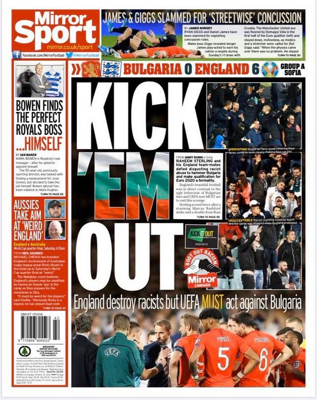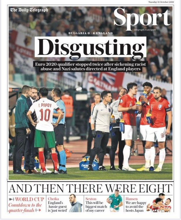 Ο ρατσισμός εμφάνισε για μία ακόμα φορά το αποκρουστικό του πρόσωπο μέσω της αήθους επίθεσης των οπαδών της Βουλγαρίας σε Άγγλους παίκτες και τα ΜΜΕ στο Νησί δεν άργησαν να περάσουν στην αντεπίθεση.