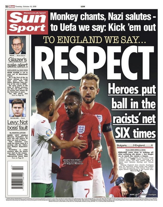 Sun: Σεβασμός στην Αγγλία. Οι ήρωες έβαλαν έξι φορές τη μπάλα στα δίχτυα των ρατσιστών.