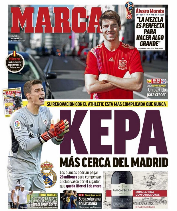 Σύμφωνα με δημοσίευμα της "AS", η Ρεάλ Μαδρίτης ενδιαφέρεται για την απόκτηση του τερματοφύλακα της Αθλέτικ Μπιλμπάο, Κέπα Αριθαμπαλάγα, το συμβόλαιο του οποίου ολοκληρώνεται το προσεχές καλοκαίρι.