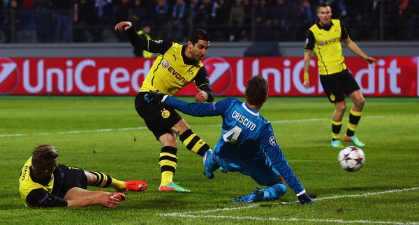 Οι Γερμανοί ξάφνιασαν το “Πετρόβσκι”, καθώς με τέρματα των Μχιταριάν και Ρόις προηγήθηκαν 2-0 στο 5ο λεπτό, κάτι που καταφέρνει φιλοξενούμενος για πρώτη φορά στην ιστορία του Champions League.