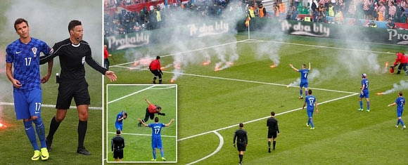 Ενώ το σκορ ήταν 2-1, λίγο πριν συμπληρωθεί το 90άλεπτο, Κροάτες οπαδοί έριξαν καπνογόνα στον αγωνιστικό χώρο και το ματς διεκόπη για περίπου 5 λεπτά. Μάλιστα έπεσε “ξύλο” στην εξέδρα με τους Κροάτες να χτυπούν αυτούς που πέταξαν τα καπνογόνα, καθώς δημιούργησαν πρόβλημα στην ομάδα χωρίς λόγο. Και όμως η Τσεχία κατάφερε να ισοφαρίσει με πέναλτι του Νέτσιντ στο 93′!