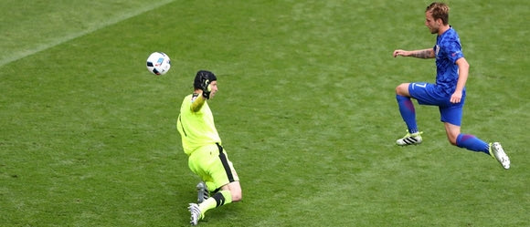 Στο 37′ ο Πετρ Τσεχ με το πόδι απέκρουσε σουτ του Ίβαν Ράκιτιτς, αλλά στο ίδιο λεπτό η Κροατία κατάφερε να ανοίξει το σκορ με τον Ίβαν Ράκιτιτς. Ο Γιαρόσλαβ Πλάσιλ έχασε την μπάλα στο κέντρο και ο παίκτης της Ίντερ την πήρε, μπήκε στην περιοχή, έκανε προσποιήσεις στον Σίβοκ και αριστερό διαγώνιο σουτ έκανε το 0-1.