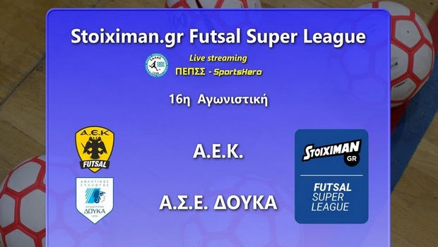 Παρακολουθήσετε στις 16:00 σε LIVE Streaming με περιγραφή το ντέρμπι futsal ΑΕΚ - Δούκας από το κλειστό του Καματερού σε παραγωγή του Sportshero.