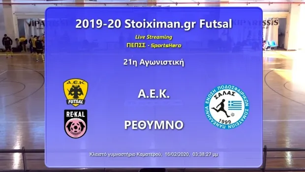 Παρακολουθήσετε σε LIVE Streaming στις 16:00 τον αγώνα ΑΕΚ - Ρέθυμνο από το κλειστό του Καματερού για την 21η αγωνιστική της Stoiximan.gr Futsal Super League.