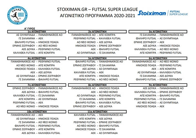 Πραγματοποιήθηκε την Δευτέρα (24/8) η κλήρωση για το πρωτάθλημα της σεζόν 2020-21 στη Stoiximan.gr Futsal Super League, ενώ ανακοινώθηκαν οι αλλαγές στον τρόπο διεξαγωγής του.