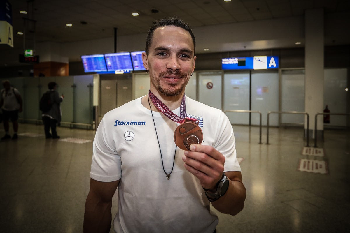 Ο Λευτέρης Πετρούνιας με το χάλκινο μετάλλιο στο Ελ. Βενιζέλος