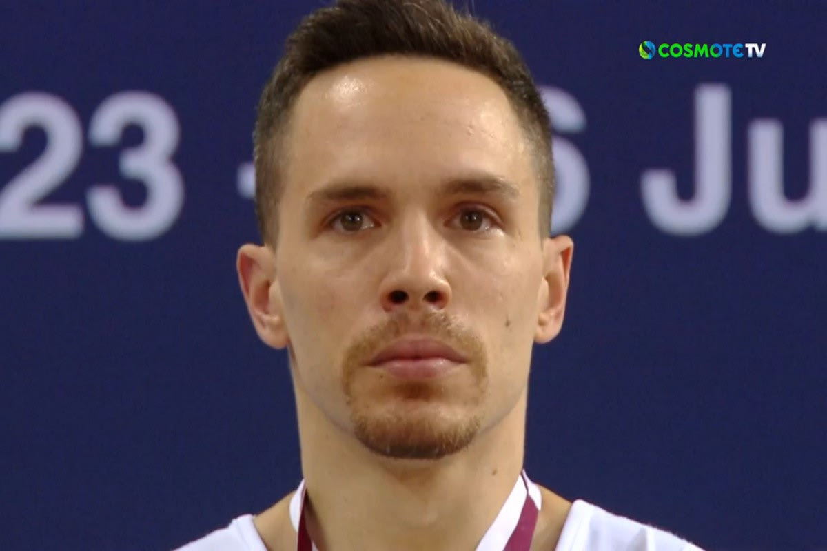 Ο Λευτέρης Πετρούνιας συγκινήθηκε και κόμπιασε κατά την ανάκρουση του εθνικού ύμνου και την απονομή του μεταλλίου PRINT SCREEN