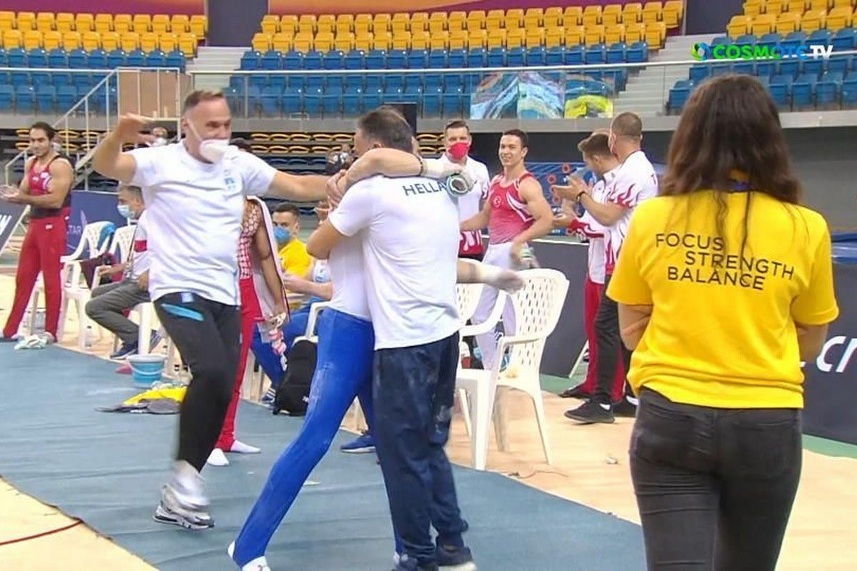 Ο Πετρούνιας δεν μπόρεσε να κρύψει τη χαρά του στην ανακοίνωση της βαθμολογίας και ξέσπασε σε πανηγυρισμούς με τον προπονητή του για την μεγάλη αυτή πρόκριση στην Ολυμπιάδα του Τόκιο.