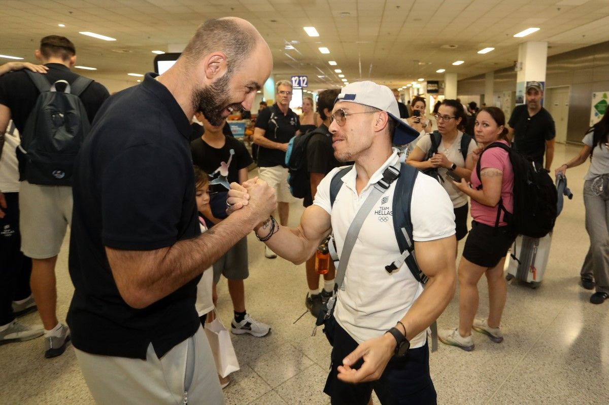 Λευτέρης Πετρούνιας και Βασίλης Σπανούλης είχαν ένα όμορφο τετ α τετ στο αεροδρόμιο Ελευθέριος Βενιζέλος, κατά την κοινή άφιξή τους από τους Ολυμπιακούς Αγώνες του Παρισιού.