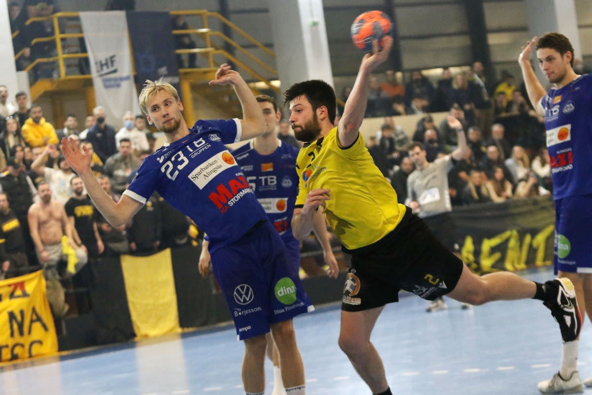 Οι Σουηδοί είχαν και πάλι τις απαντήσεις με τους Πέντερσεν και Γιόνσον και ισοφάρισαν 14-14 και 15-15 (28’). Με τον Λέμος και δύο καταπληκτικά γκολ του Μαντάλινιτς η ΑΕΚ έτρεξε σερί 3-0 για το 18-15 στο 30’ με τον Πέντερσεν να σκοράρει, διαμορφώνοντας το σκορ (18-16) του ημιχρόνου.