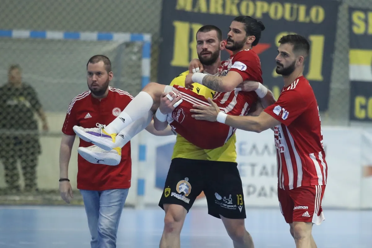 Ο τρίτος τελικός της Handball Premier ανάμεσα στην ΑΕΚ και τον Ολυμπιακό είχε μια πολύ ωραία στιγμή, καθώς ο Λεονάρντο Αλμέιδα της Ένωσης πήρε αγκαλιά τον Χάραλαμπο Δομπρή των ερυθρολεύκων που είχε γυρίσει τον αστράγαλό του.