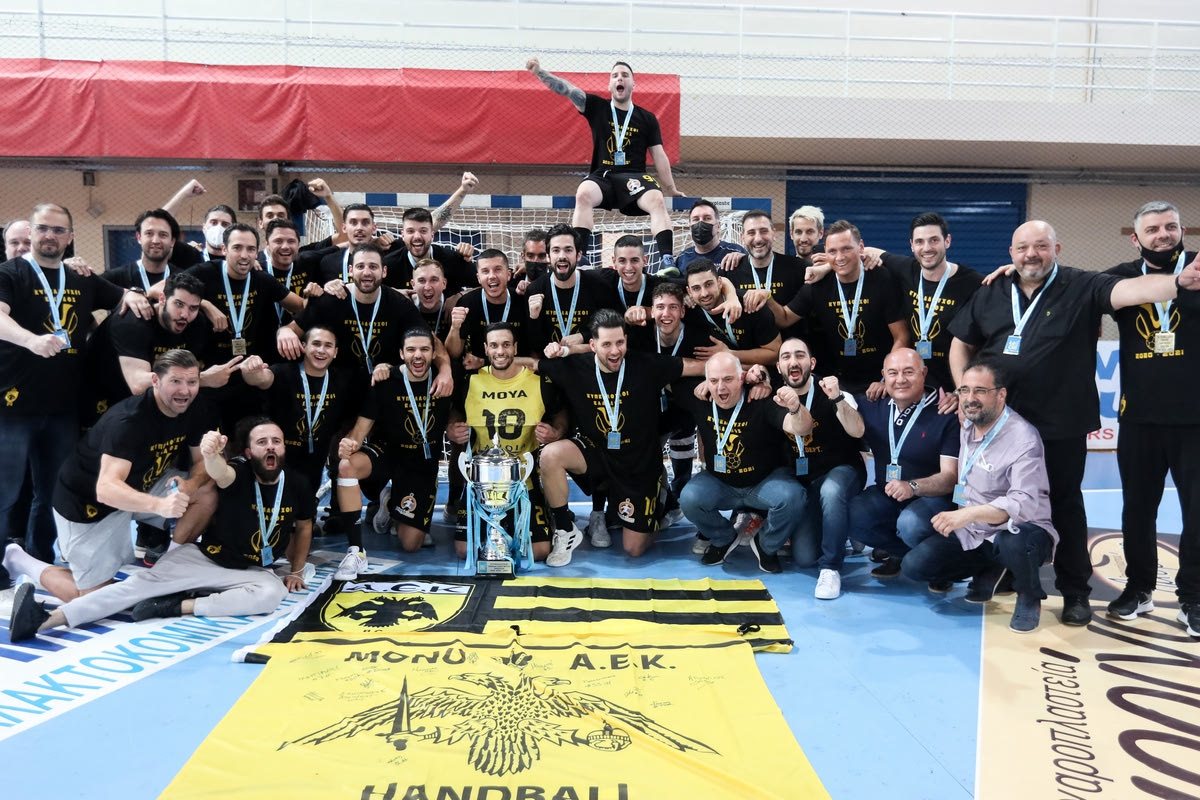 Η ΑΕΚ επικράτησε του ΠΑΟΚ 24-22 στον τελικό Κυπέλλου Ελλάδας στο χάντμπολ ανδρών, κατακτώντας το τρόπαιο για τέταρτη φορά στην ιστορία της.