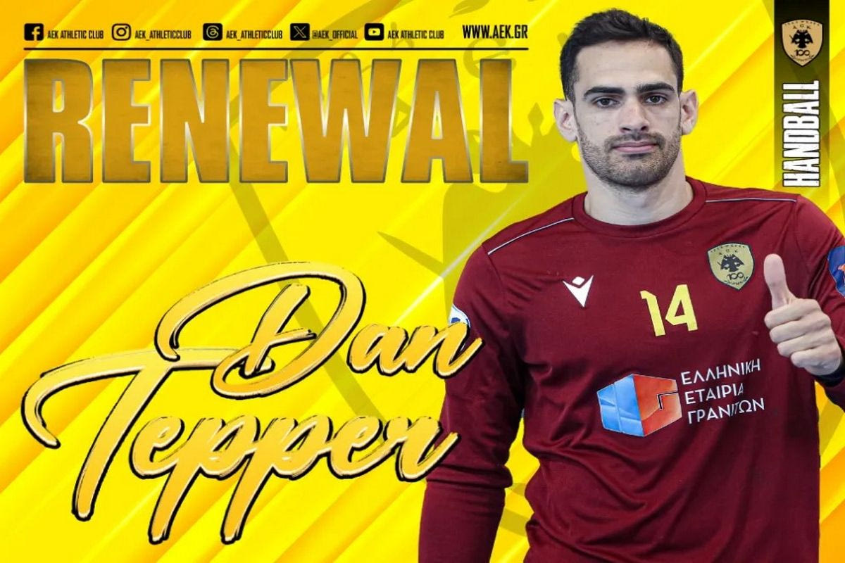 “Η ΑΕΚ βρίσκεται στην ευχάριστη θέση να ανακοινώσει την ανανέωση της συνεργασίας της με τον Νταν Τέπερ. Ο 29χρονος (04/03/1994) διεθνής Ισραηλινός τερματοφύλακας, ύψους 1,90 μ., υπέγραψε το νέο του συμβόλαιο και θα παραμείνει στο δυναμικό της ανδρικής ομάδας Χάντμπολ του Συλλόγου.
