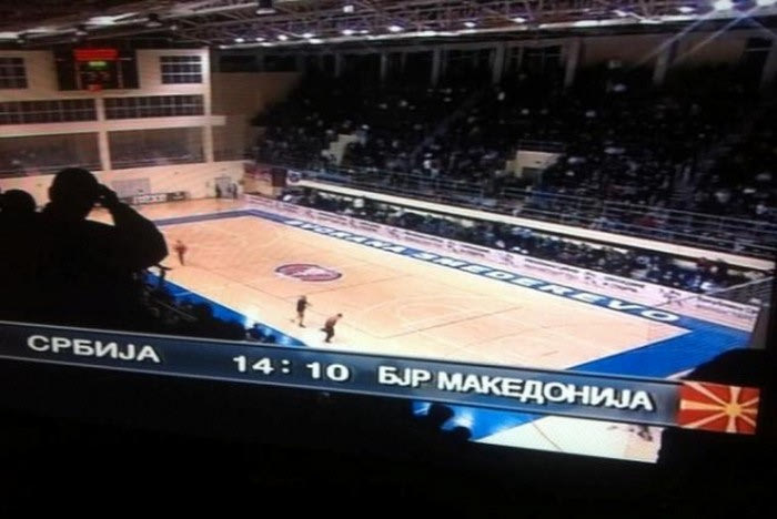 Οι Σκοπιανοί που ηττήθηκαν με 26-23 απείλησαν μάλιστα τους Σέρβους πως σε προσεχή ματς της Σερβίας ως αντίποινα θα κρατούν σημαίες του Κοσόβου!