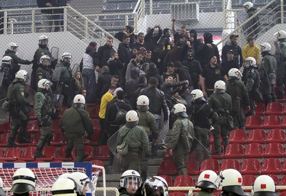 Μόλις οι οπαδοί της Ένωσης μπήκαν απότομα στο γήπεδο ξεκίνησαν τα επεισόδια και ενώ μέχρι εκείνη την στιγμή όλα κυλούσαν ομαλά. Οι παίκτες των δύο ομάδων προσπάθησαν να ηρεμήσουν τον κόσμο, αλλά μάταια, με αποτέλεσμα μετά από λίγα λεπτά να αποχωρήσουν για τα αποδυτήρια, αφού είχαν αρχίσει να εκσφενδονίζονται φωτοβολίδες με στυλό και διάφορα άλλα αντικείμενα.