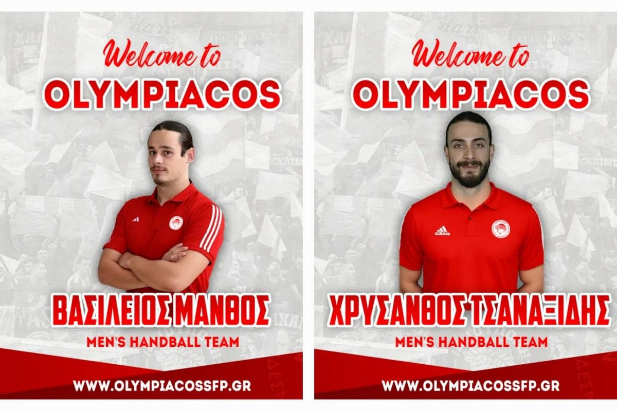 Ο Ολυμπιακός ανακοίνωσε δύο μεταγραφές για τη θέση πίβοτ στο χάντμπολ με τον Βασίλη Μάνθο και τον Χρύσανθο Τσαναξίδη να ντύνονται στα ερυθρόλευκα.