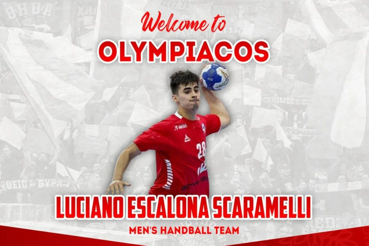 “Ο ΟΛΥΜΠΙΑΚΟΣ Σ.Φ.Π. ανακοινώνει την έναρξη της συνεργασίας του με τον Λουτσιάνο Ούγκο Σκαραμέλι Εσκαλόνα (Λουτσιάνο Εσκαλόνα). Ο διεθνής Χιλιανός, με ιταλική καταγωγή, δεξιός εξτρέμ (ημ. γέννησης 23/4/2002, 1,82μ.) υπέγραψε το νέο του συμβόλαιο και εντάσσεται στο ρόστερ της ομάδας χάντμπολ του συλλόγου.