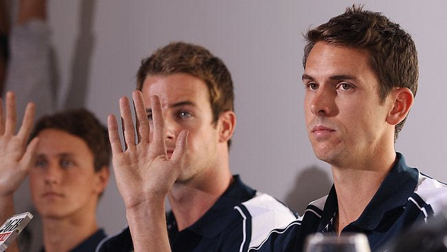 Ο Τζέιμς Μάγκνουσεν, ο Ίμον Σάλιβαν (φωτογραφία), ο Τζέιμς Ρόμπερτς, ο Ματ Τάργκετ, ο Τομάσο Ντ’Ορσόνα και ο Κάμερον ΜακΙβόι αρνήθηκαν κατηγορηματικά στη συνέντευξη Τύπου που έδωσαν στο Σίδνεϊ πως η χρήση του συγκεκριμένου χαπιού ευθύνεται για την κακή παρουσία τους στους Ολυμπιακούς Αγώνες και την 4η θέση στη σκυταλοδρομία 4χ100μ. ελεύθερο!