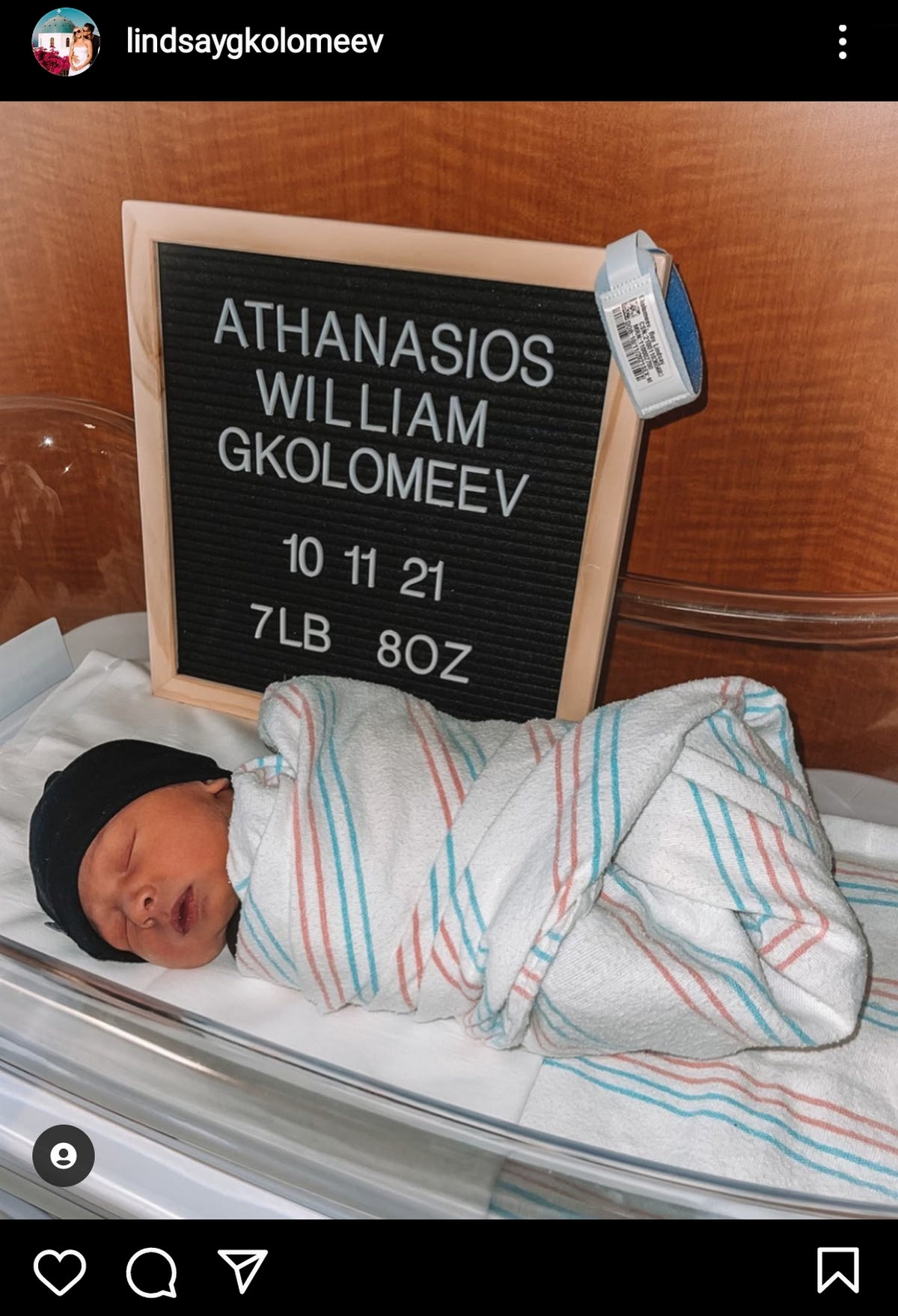Ο μικρός Αθανάσιος Γουίλιαμ Γκολομέεβ ήρθε στον κόσμο στις 11 Οκτωβρίου και όπως ήταν φυσιολογικό το ζευγάρι πλέει σε πελάγη ευτυχίας. Ο Κριστιάν Γκολομέεβ και η Λίντσεϊ είναι μαζί εδώ και επτά χρόνια και τους ένωσε η αγάπη τους για την κολύμβηση.