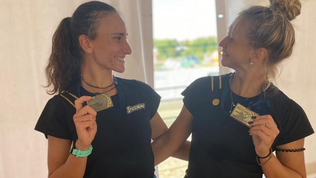 Η Μαρία Κυρίδου και η Χριστίνα Μπούρμπου ποζάρουν με τα μετάλλια που κατέκτησαν στο Πόζναν