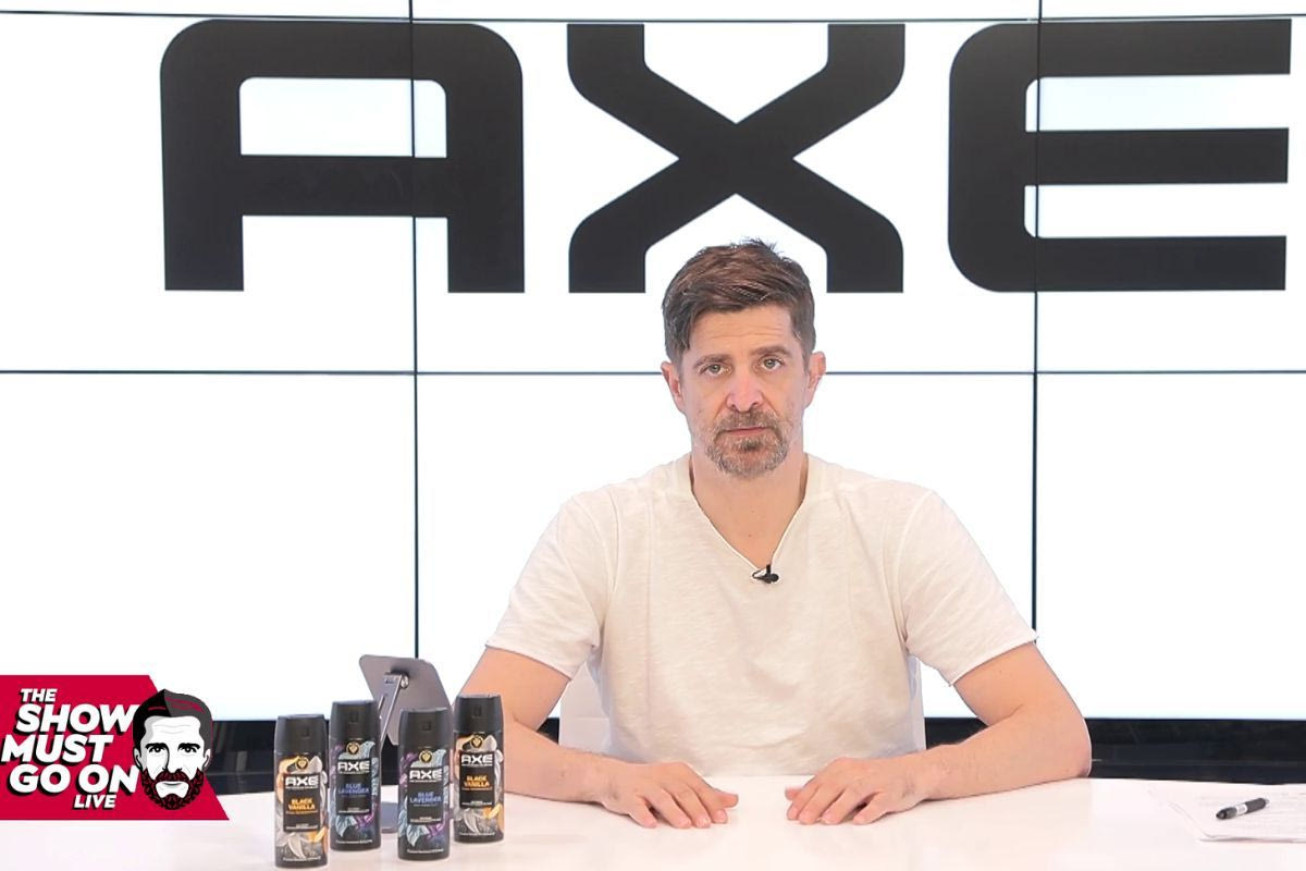 Μια εκπομπή με αλήθειες όσο σκληρές κι αν είναι αυτές, ένα show γεμάτο ασυναγώνιστη αυτοπεποίθηση και φρεσκάδα όσον αφορά στην επικαιρότητα. Στοιχεία που διαθέτει και το AXE, το κορυφαίο άρωμα AXE όλων των εποχών. Το AXE σου επιτρέπει να μυρίζεις κορυφαία. Τόσο κορυφαία όσο ένα premium άρωμα. Ένα premium λοιπόν άρωμα, μαζί με την κορυφαία μεσημεριανή αθλητική εκπομπή , έκαναν φοβερή παρέα σε όλο τον μήνα του Euro. Το ΑΧΕ συνόδευσε το Show Must Go On σε 22 εκπομπές , έχοντας μάλιστα και φυσική παρουσία στο studio , αλλά και με το τρομερό ΑΧΕ poll.