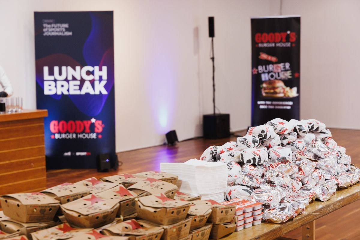 Και στις 13:30 ήρθε η ώρα για το Lunch Break των Goody’s Burger House, που κράτησαν χορτάτους τους συμμετέχοντες για την εξίσου ενδιαφέρουσα συνέχεια, καθώς στη σκηνή ανέβηκαν ο διευθυντής σύνταξης του SPORT24, Θέμης Καίσαρης και ο αρχισυντάκτης, Ηλίας Καλλονάς για να αναλύσουν πώς στήνεται η κεντρική σελίδα σε ένα αθλητικό σάιτ.