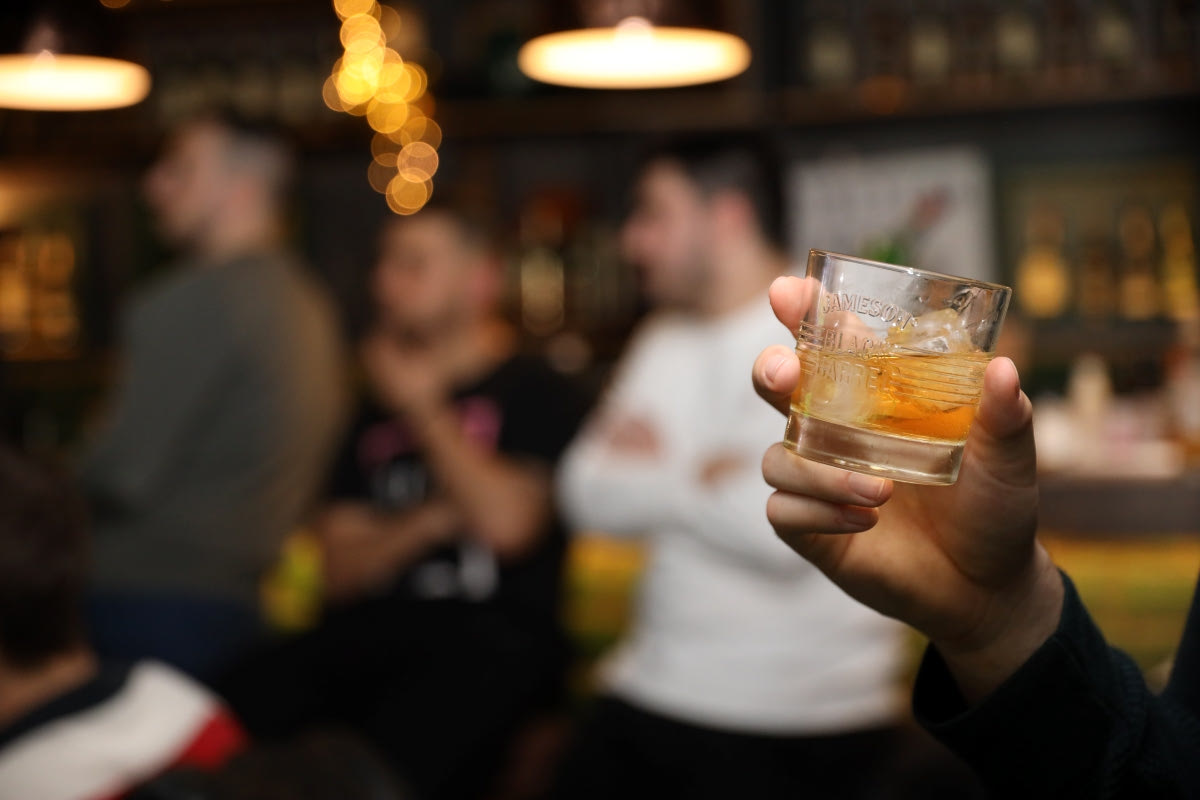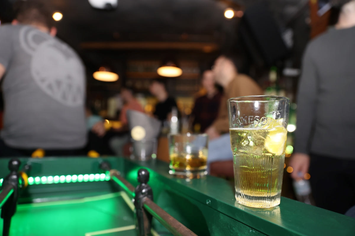 Αφού πήραν όλοι τα ποτά τους, έκατσαν στις θέσεις και ήμασταν έτοιμοι για τον αγώνα. Μίας και είπαμε για ποτά, στην μπάρα του Jameson Shelter μπορούσες να παραγγείλεις ένα από τα τρία cocktails, είτε σκέτο Jameson.