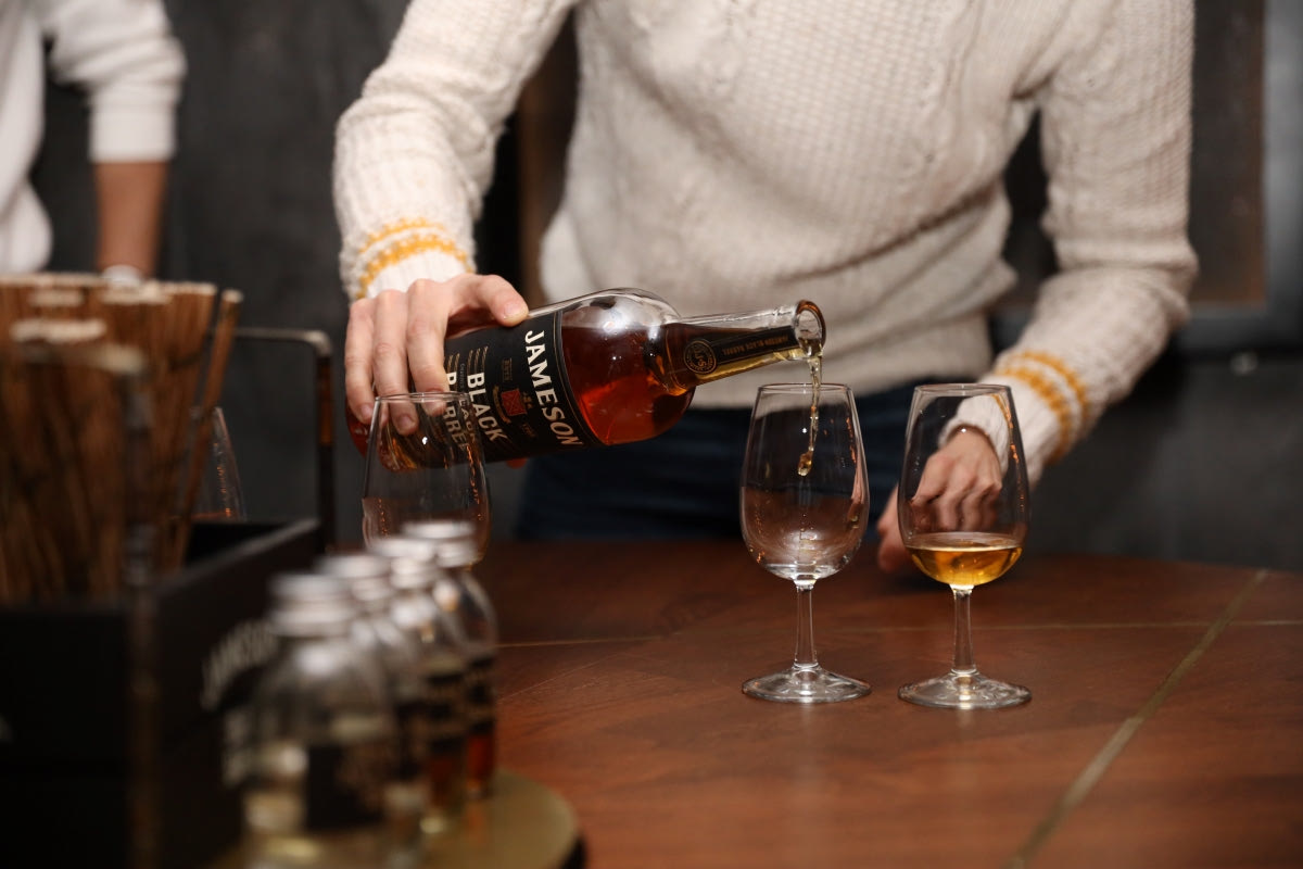 Μέσα στο ειδικά διαμορφωμένο δωμάτιο του Jameson Shelter, όπου υπήρχε ένα μεγάλο στρογγυλό τραπέζι, κάθονταν οι αναγνώστες του SPORT24 και υπό τις οδηγίες του Θέμου Κοντοδήμα, brand ambassador του Jameson στην Ελλάδα γνώριζαν το εξαιρετικό αυτό απόσταγμα μέσα από μια γευσιγνωσία.