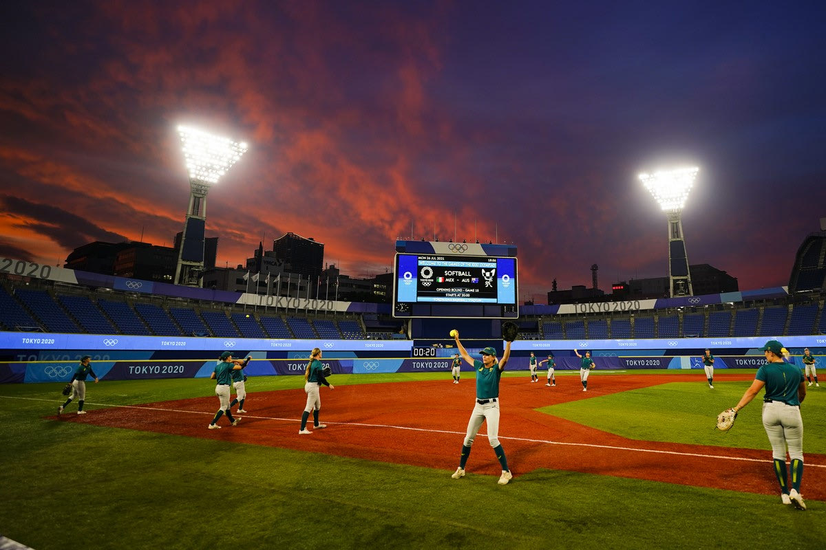 Παίκτριες της Αυστραλίας πριν από τον αγώνα με το Μεξικό για τη φάση των ομίλων του τουρνουά σόφτμπολ στους Ολυμπιακούς Αγώνες 2020, Τόκιο | Δευτέρα 26 Ιουλίου 2021