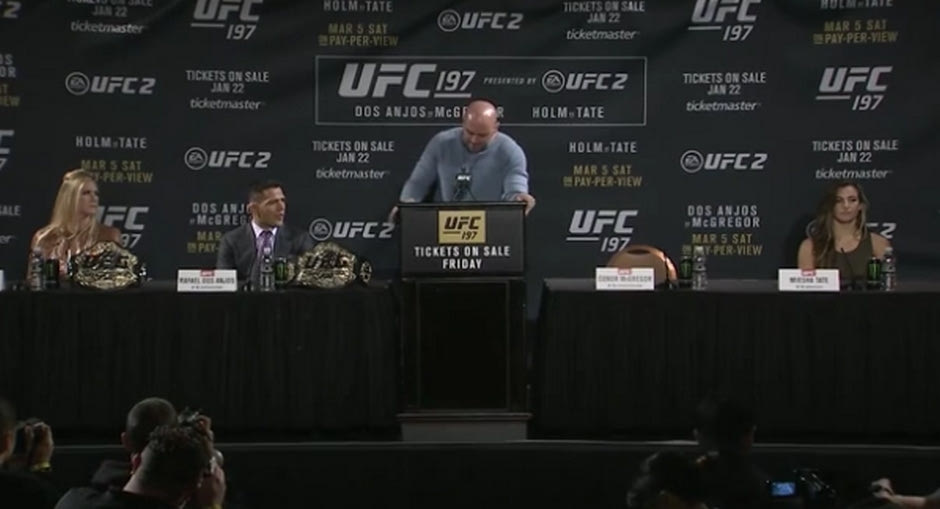 H συνέντευξη Τύπου του αγώνα έγινε τη Δευτέρα (8/2), με τον McGregor να εμφανίζεται με μισή ώρα καθυστέρηση, πριν αρχίσει να επιτίθεται λεκτικά στον Βραζιλιάνο αντίπαλο του στη διαδικασία που διήρκεσε τη μια ώρα. Τα έβαλε και με την οικογένεια του dos Anjos, ο οποίος αρκέστηκε στο να σχολιάσει “οι γονείς μου, μου έμαθαν απ’ όταν ήμουν μικρός να μην τσακώνομαι με τρελούς. Να τους αφήνω να μιλάνε. Αυτό έκανα και με τον Conor. Με ενδιαφέρει να κάνω τη δουλειά μου και ξέρω πως στις 5 του Μάρτη θα είμαι έτοιμος. Τότε θα πληρώσει για όσα έχει πει για το Θεό μου, τη γυναίκα μου, τα παιδιά μου. Στο οκτάγωνο πληρώνουν όλοι τις αμαρτίες τους”. Τι αμαρτίες έχει κάνει ο McGregor; Διαβάστε.