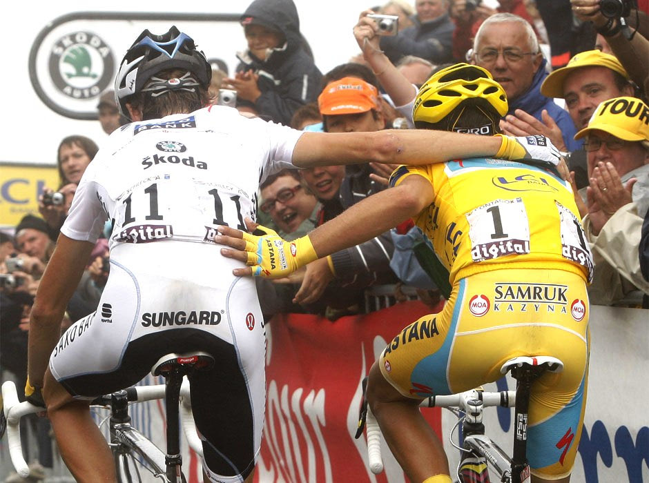 Άντι και Αλμπέρτο τερματίζουν αγκαλιασμένοι στο Τουρμαλέ, μετά από μια μυθική μάχη. Ο μικρός Σλεκ υπήρξε ένας από τους μεγαλύτερους αντιπάλους και φίλους του Κονταδόρ (22/7/2010)