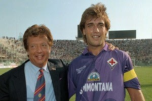 Ήταν μάλιστα τόσο μεγάλη που κάποια στιγμή στο πλαίσιο της βράβευσής του δεν άντεξε, “λύγισε”, “έσπασε”, βούρκωσε. Θαρρείς και μέσα σε μερικά δευτερόλεπτα περνούσαν flash-back από μπροστά του όλα εκείνα τα γκολ με τα οποία βομβάρδιζε τις αντίπαλες άμυνες για εννέα ολόκληρα χρόνια με τη μοβ φανέλα και τα οποία τον είχαν μετατρέψει το απόλυτο είδωλο της Curva Fiesole του Αρτέμιο Φράνκι.