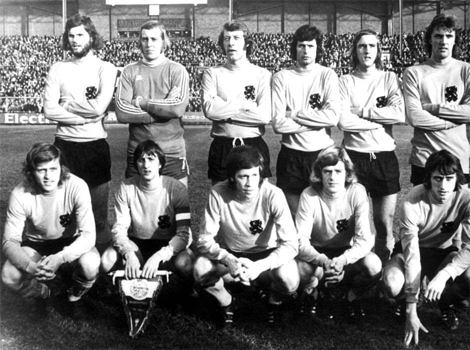 Συνεχίζουμε με μια ακόμα πιο φημισμένη Εθνική, εκείνη της Ολλανδίας του 1974. Οι “οράνιε” μέχρι τότε δεν είχαν κάποια αξιοπρόσεκτη παρουσία στα Παγκόσμια Κύπελλα (9οι το 1934 και 14οι το 1938), ενώ είχαν απουσιάσει από έξι σερί διοργανώσεις (1950-1970). Ήταν φανερό όμως πως πήγαιναν στη Δυτική Γερμανία με μεγάλες φιλοδοξίες. Η υπερομάδα του Ρίνους Μίχελς, ο οποίος είχε ήδη δημιουργήσει τον μεγάλο Άγιαξ και στη συνέχεια είχε πάει στη Μπαρτσελόνα, ήταν ένα σύνολο από εκπληκτικούς παίκτες. Φυσικά ο μεγάλος ηγέτης ήταν ο Γιόχαν Κρόιφ, που ένα χρόνο πριν είχε αφήσει τον “Αίαντα”, ακολουθώντας τον Μίχελς στη Βαρκελώνη. Το “total football” με τη συνεχή κίνηση και τις αλλαγές ρόλων, είχε ήδη καταθέσει τα διαπιστευτήριά του με τις τρεις συνεχόμενες κατακτήσεις του Κυπέλλου Πρωταθλητριών από τον Άγιαξ (1971-1973) και πλέον ετοιμαζόταν να κατακτήσει και την κορυφή του κόσμου. Η ολλανδική ομοσπονδία είχε αναθέσει στον Μίχελς τον ρόλο του εκλέκτορα για το Μουντιάλ και ο Ολλανδός προπονητής είχε στη διάθεσή του μια πλειάδα πολύ μεγάλων παικτών: Άρι Χάαν, Πιτ Κάιζερ, Ρενέ και Βίλι Φαν ντε Κέρκοφ, Ρούουντ Κρολ, Γιόχαν Νέεσκενς, Ρομπ Ρένσενμπρινκ, Τζόνι Ρεπ, Βιμ Σουουρμπίρ, Τέο ντε Γιόνγκ και πολλούς άλλους.