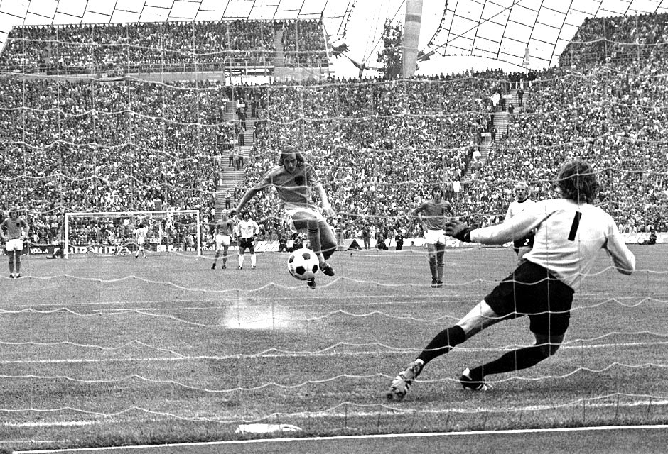 Στον τελικό του 1974, αμέσως μετά τη σέντρα, οι Ολλανδοί άλλαξαν 16 φορές τη μπάλα, κέρδισαν πέναλτι, το μετέτρεψαν σε γκολ και μόνο τότε ακούμπησαν για πρώτη φορά τη μπάλα οι Δυτικογερμανοί