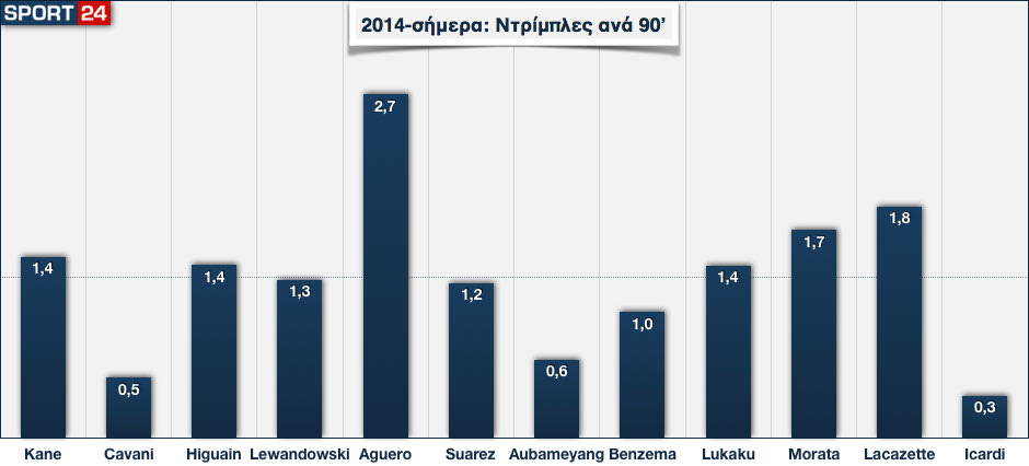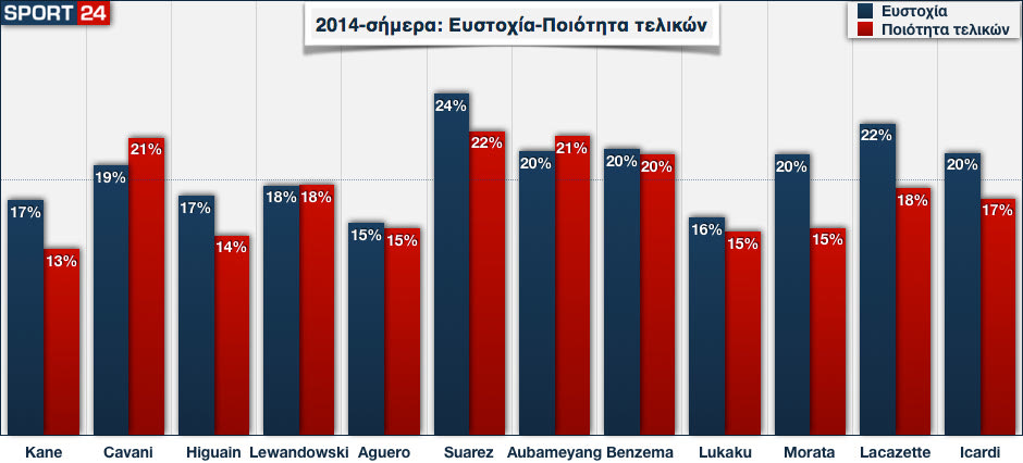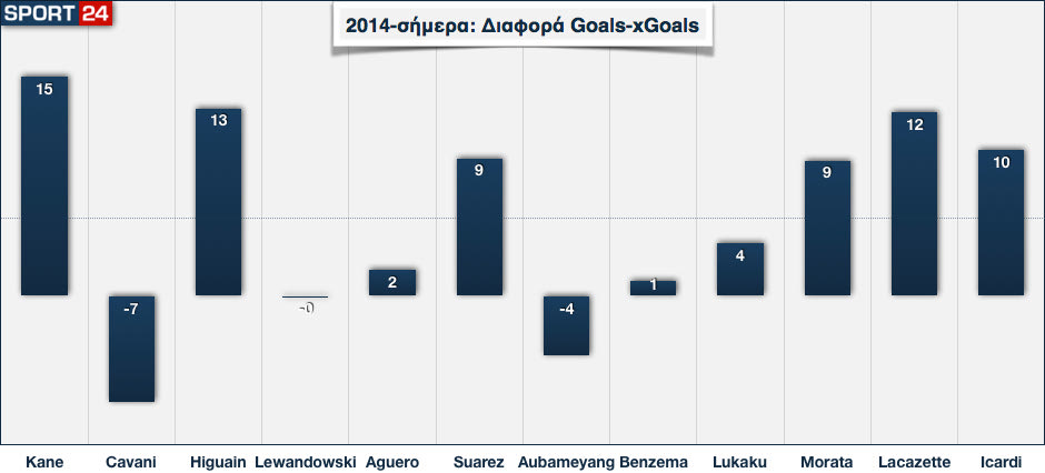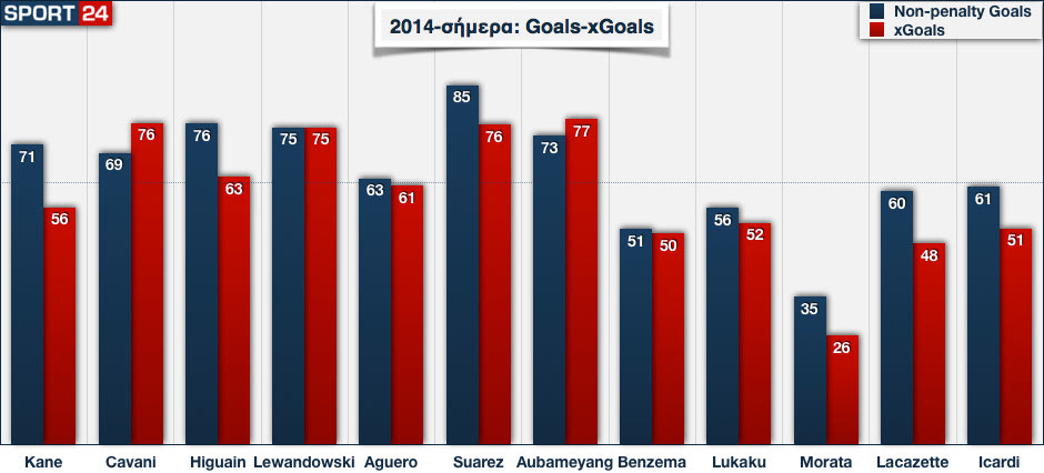 Πλέον μπορεί να φανεί γιατί ο Ομπαμεγιάνκ δεν έφυγε ποτέ για μεγαλύτερη ομάδα, γιατί ο Καβάνι δεν ήταν για κάτι μεγαλύτερο. Μεγάλοι σκόρερ όσον αφορά τον όγκο των γκολ, αλλά όχι κάτι σπουδαίο στην αποτελεσματικότητα. Και είναι ορατό γιατί ο Κέιν γίνεται στόχος για όλους, γιατί η Ρεάλ άφησε μάλλον εύκολα τον Μοράτα, γιατί ο Λακαζέτ άργησε να φύγει απ’τη Γαλλία και γιατί ο Ικάρντι τρελαίνει κόσμο.
