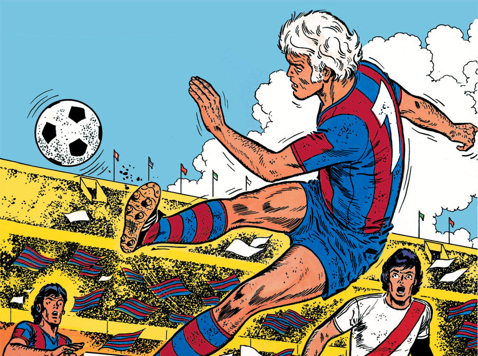 Κόμικς και ποδόσφαιρο. Ένα θέμα που μάλλον συγκινεί περισσότερο τους μεγαλύτερους, χωρίς όμως να αφήνει αδιάφορους και τους νεώτερους. Βέβαια, οι παλιότερες γενιές μεγάλωσαν κυριολεκτικά διαβάζοντας τις ιστορίες που κυκλοφορούσαν από τη δεκαετία του ‘60, γνωρίζοντας την απόλυτη ακμή τους μέσα στις δεκαετίες του ‘70 και του ‘80. Τα ποδοσφαιρικά κόμικς τα βρίσκαμε στα εικονογραφημένα Μπλέκ, Αγόρι κλπ ως δευτερεύουσες ιστορίες, αλλά δεν υπήρχε περίπτωση να μην τα “ρουφήξουμε”, φτιάχνοντας παράλληλα φανταστικές σκηνές στο μυαλό μας, εκεί όπου ήμασταν εμείς οι πρωταγωνιστές μέσα στο γήπεδο, είτε πετυχαίνοντας εντυπωσιακά γκολ, είτε σταματώντας τους αντίπαλους με εκπληκτικές επεμβάσεις. Με αφορμή την υπέροχη ιδέα του Έθνους να εξασφαλίσει όλα τα τεύχη (15+1) ενός από τους σημαντικότερους ποδοσφαιρικούς “ήρωες” αυτού του είδους, του Ερίκ Καστέλ και να τα προσφέρει μαζί με το Έθνος της Κυριακής (αρχίζοντας από την επόμενη Κυριακή, 17/12), θα παρουσιάσουμε τη “βιογραφία” του Γάλλου άσου που μεγαλούργησε στην Μπαρτσελόνα και την Παρί Σεν Ζερμέν, σε ένα κείμενο γεμάτο εικόνες, χρώματα, νοσταλγία και αναμνήσεις, που πολύ σύντομα θα “ζωντανέψουν” ξανά!