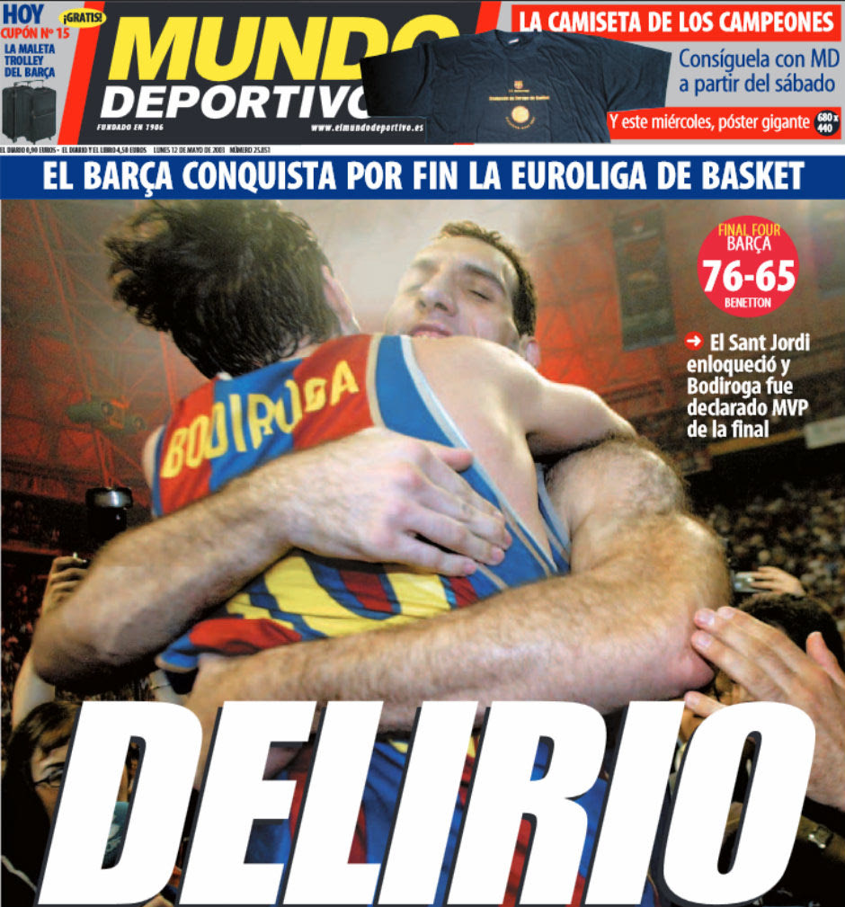 “Ντελίριο!” ήταν ο τίτλος της “Mundo Deportivo” μετά από τον θρίαμβο επί της Μπένετον Τρεβίζο στον τελικό της 11ης Μαΐου 2003, εκεί όπου το τρίποντο παραλήρημα των Γιασικεβίτσιους, Ναβάρο και Μποντιρόγκα στα 90″ για τη λήξη έφερε την πρώτη Euroleague στο μουσείο της Μπαρτσελόνα.